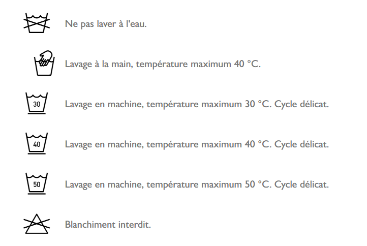 Pour qu’ils gardent plus longtemps leur beauté d’origine, suivez scrupuleusement les instructions de lavage.