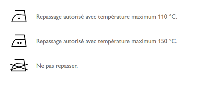 6. En présence de décorations/imprimés, il est conseillé de repasser la pièce sur l’envers.